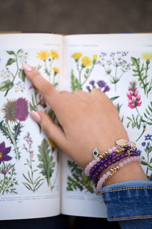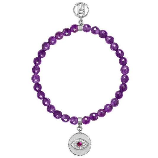 Angel Zadkiel Purple Bracelet with Diamante 925 Sterling Silver, 18kt Gold Plating Third eye for Motivation, Trust & Clarity