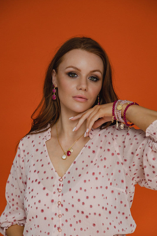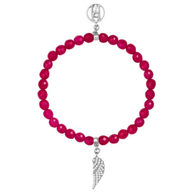 This 18kt gold plated on Brass diamante wing charm has been lovingly hand-made using Pink Agate natural stones.
