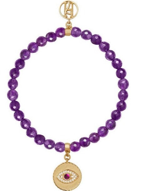 This 925 silver and 18kt gold plated diamante Third eye charm has been lovingly hand-made using Amethyst natural stones.