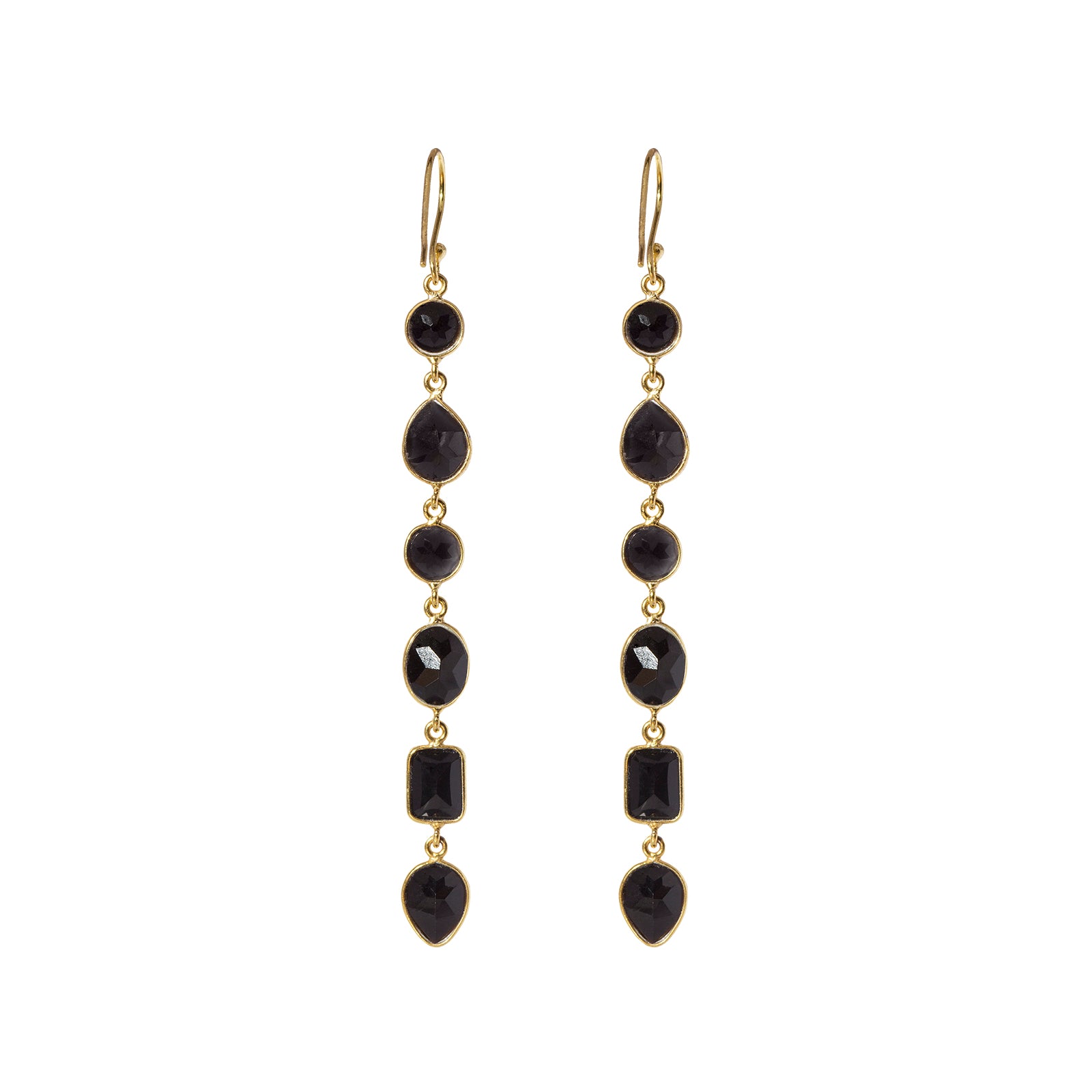 Black Onyx Long Tear Drop Vermeil Earring Representing Decision making, Prosperity, Absorbs Negative Energy