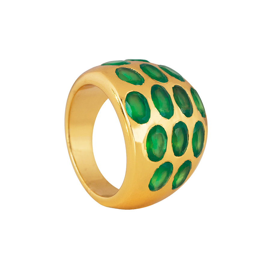 Green Onyx 18KT Vermeil Starlight Ring Collection Representing Peace and Prosperity.