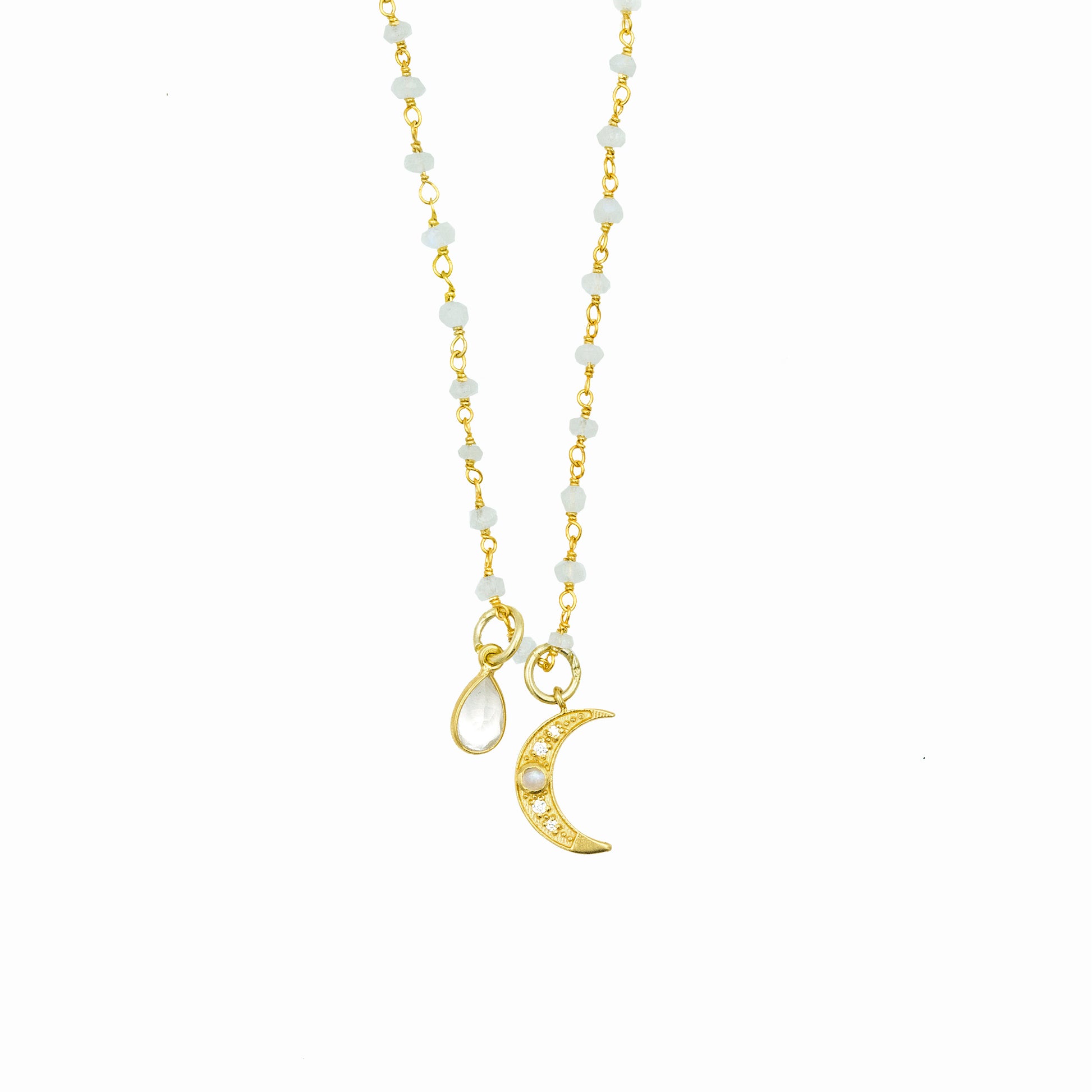 Moon Charm Gemstone Vermeil Necklace for Enlightenment