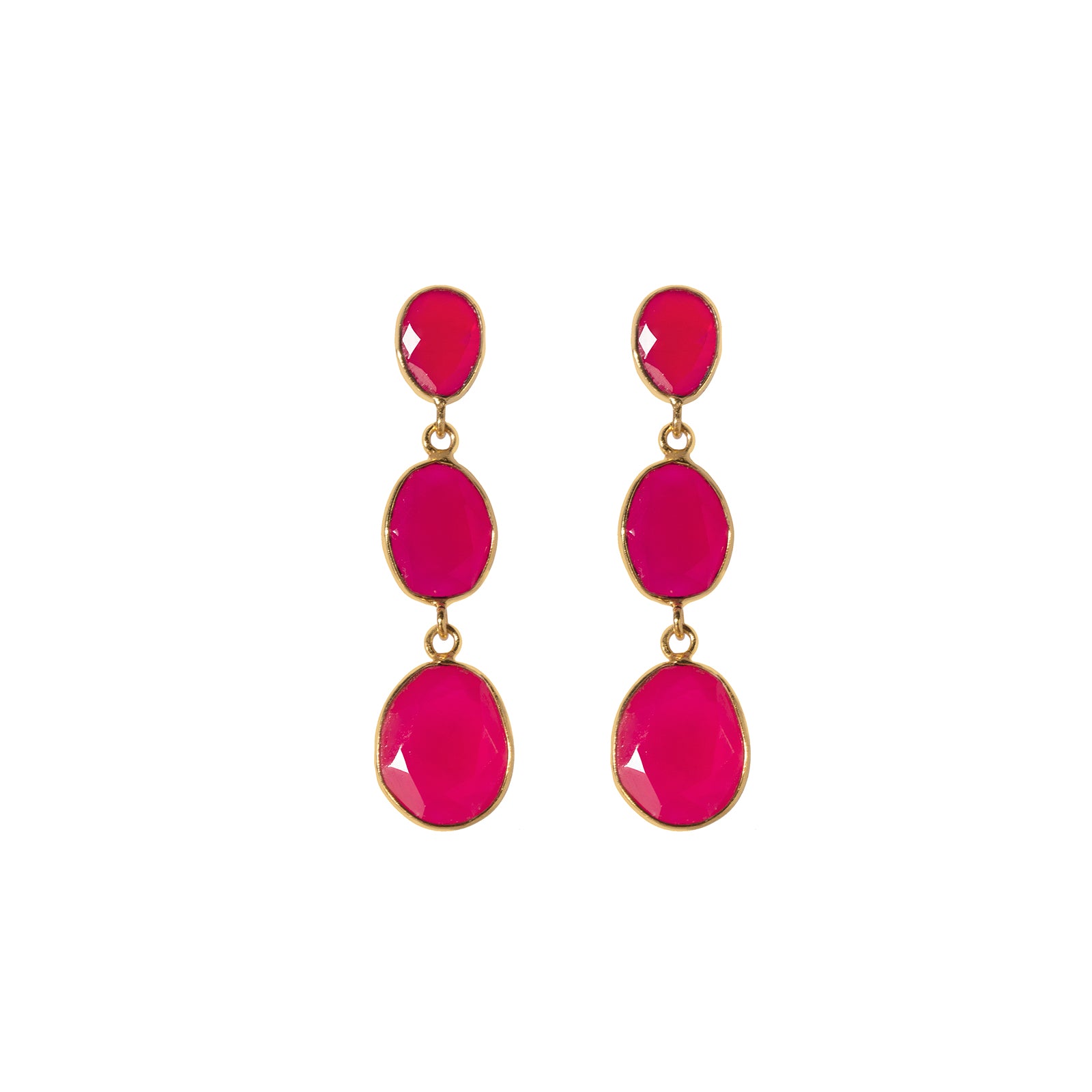 New Triple Gemstone Pink Fuchsia Drop Earrings