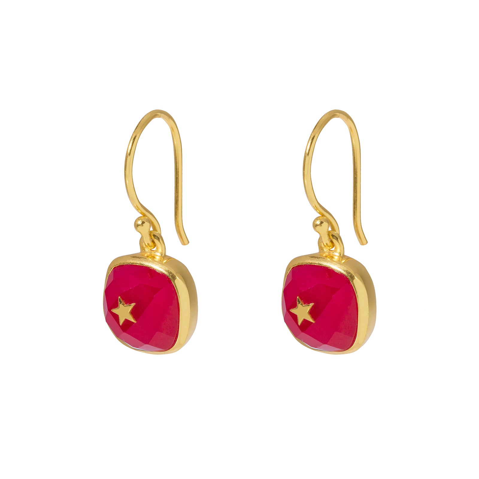 Highly polished tarnish resistant 18k gold plated 925 Sterling Silver Earrings. Faceted stone set in vermeil with Star charm.