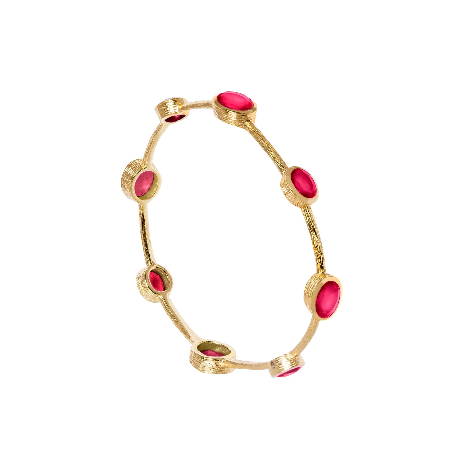 This bangle has been lovingly hand-made in India by skilled Indian artisans. It is hand-finished, made of Brass with natural Gemstones and 18k yellow real gold plating.