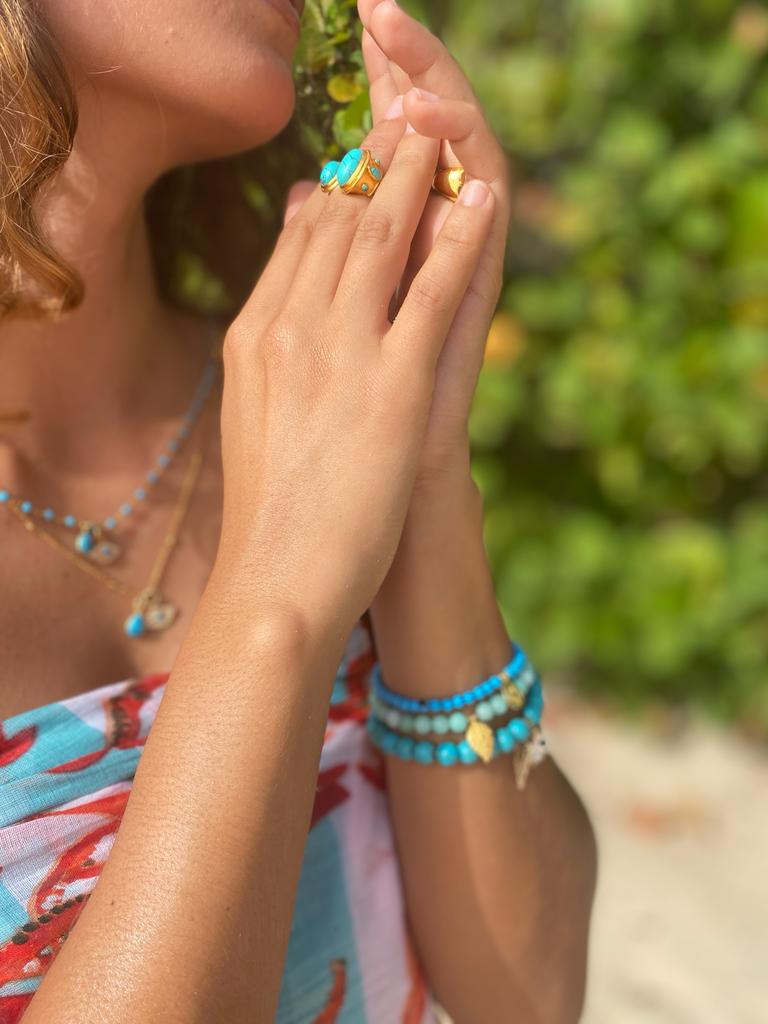 Hand-beaded 8mm bracelet in turquoise for LUCK, PROTECTION and HEALTH.